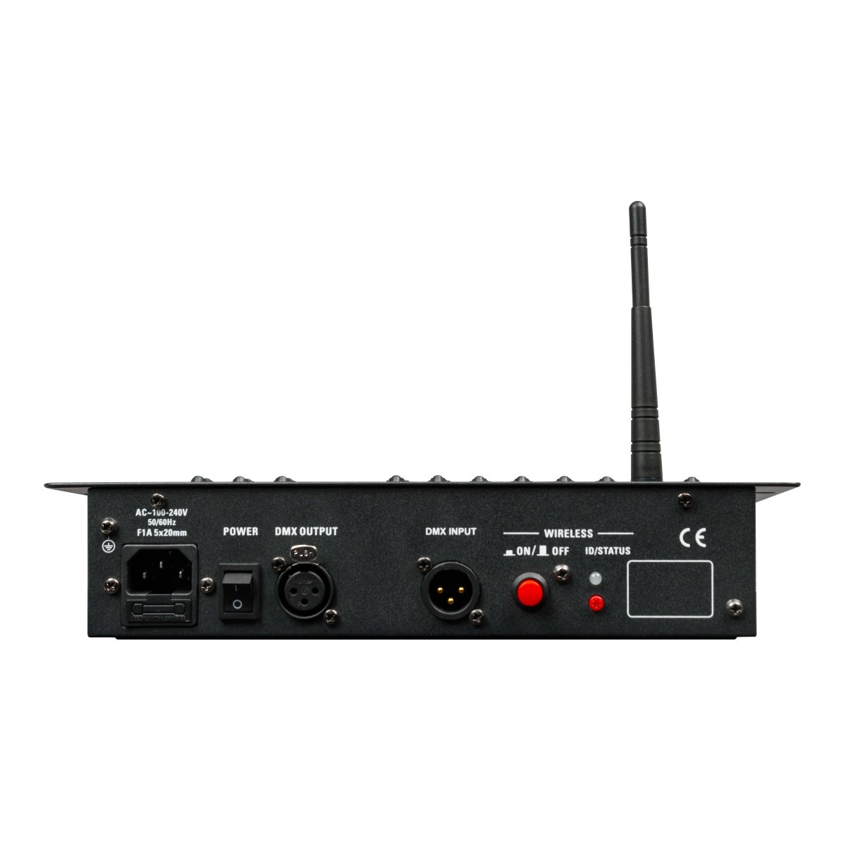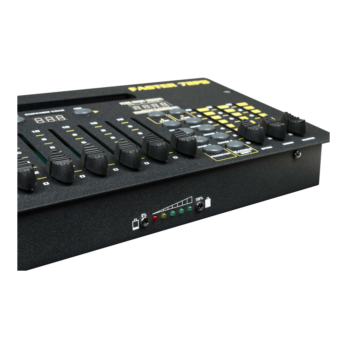 | Technical data | Programmable DMX controller for traditional projectors control 72 DMX channels in total 8 control sliders x 9 pages 6 programmable chases, each chase can have 40 steps Manual mode / Automatic mode Speed and Fade control Grand master Wireless transmitter for DMX control without cables Internal battery |