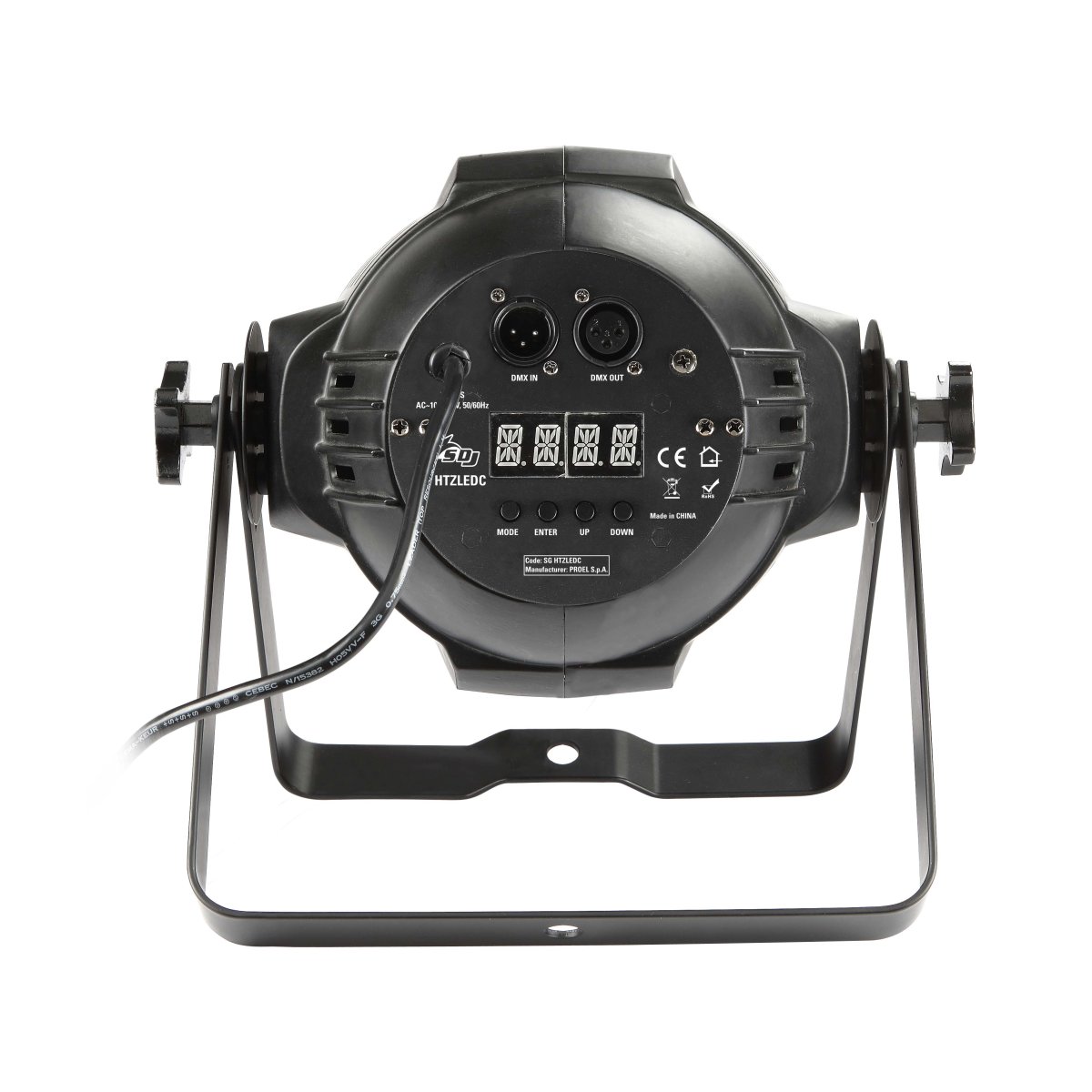 | Controllo e programmazione | 6 configurazioni DMX disponibili: 5/6/6/7/3/13 canali 4 curve dimmer selezionabili Controllo segnale USITT DMX 512 Modalità Master/Slave selezionabile Modalità Sound con sensibilità microfono regolabile Modalità Static Color con regolazione indipendente dei singoli colori Modalità Automatica con la possibilità di richiamare da display 10 programmi personalizzabili con regolazione indipendente della velocità e della strobo Modalità Color con la possibilità di richiamare numerose macro colori preimpostate |